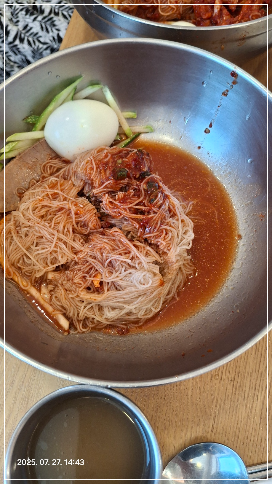 냉면집에서 먹는 따끈한 육수~ 좋지요. ㅎㅎ