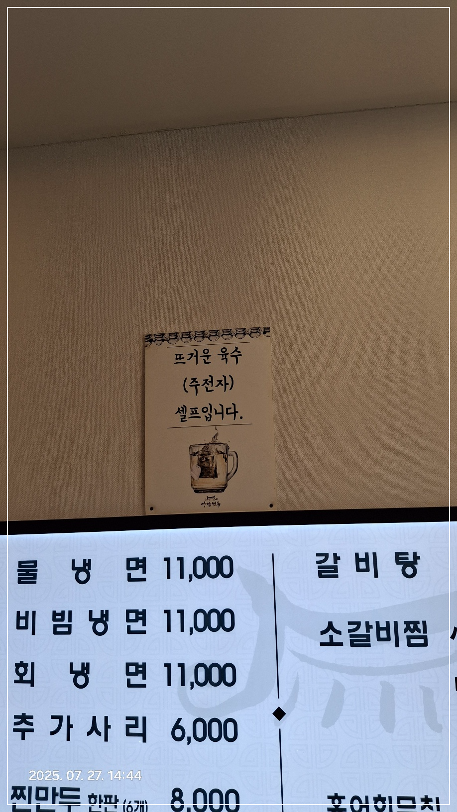 메뉴판 위쪽의 작은 안내문을 자세히 보니... "뜨거운 육수" 가 셀프입니다.