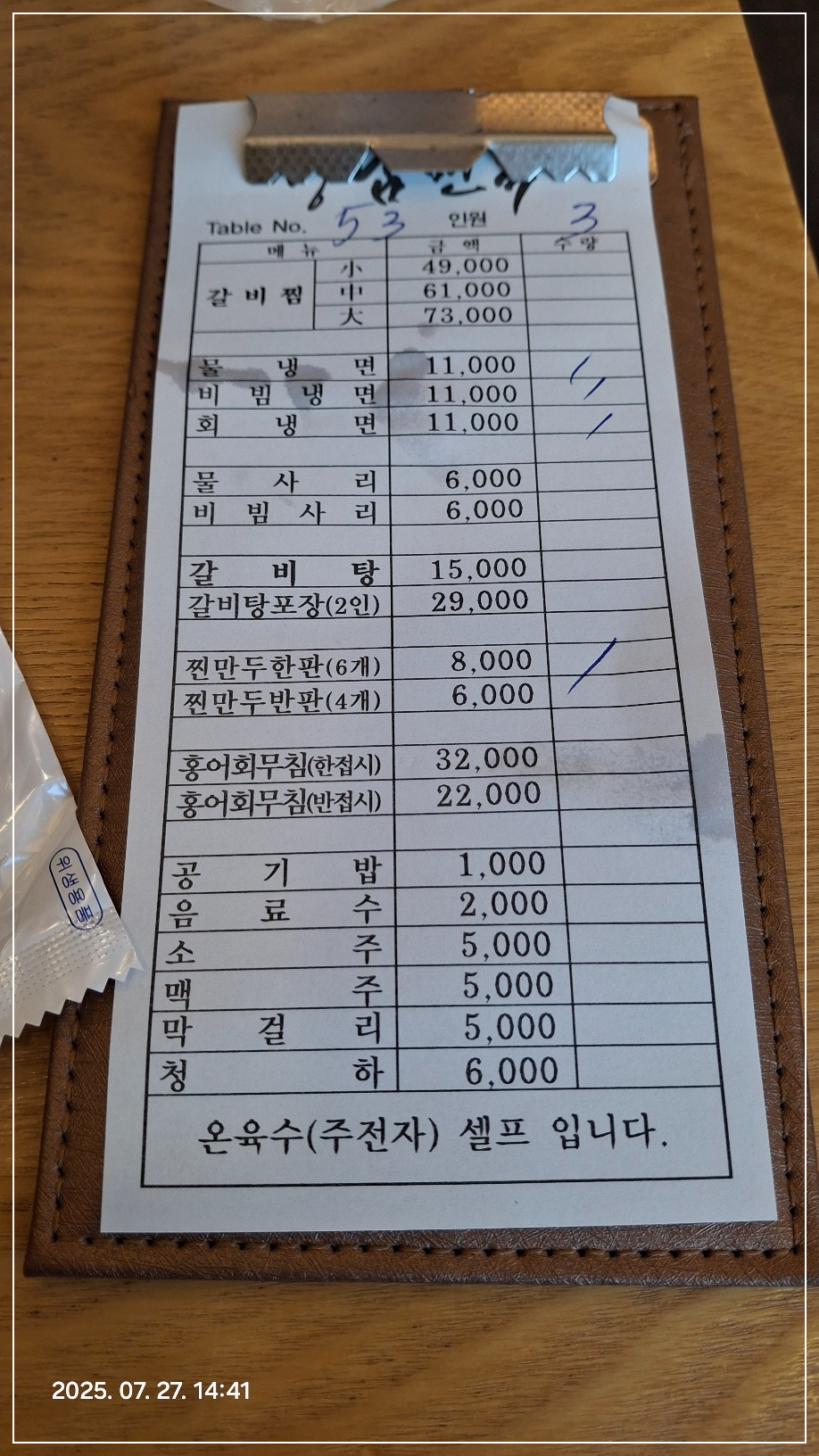그리고 저는 살면서 물냉,비냉,회냉의 가격이 똑같은 집은 처음입니다. ㅎㅎ