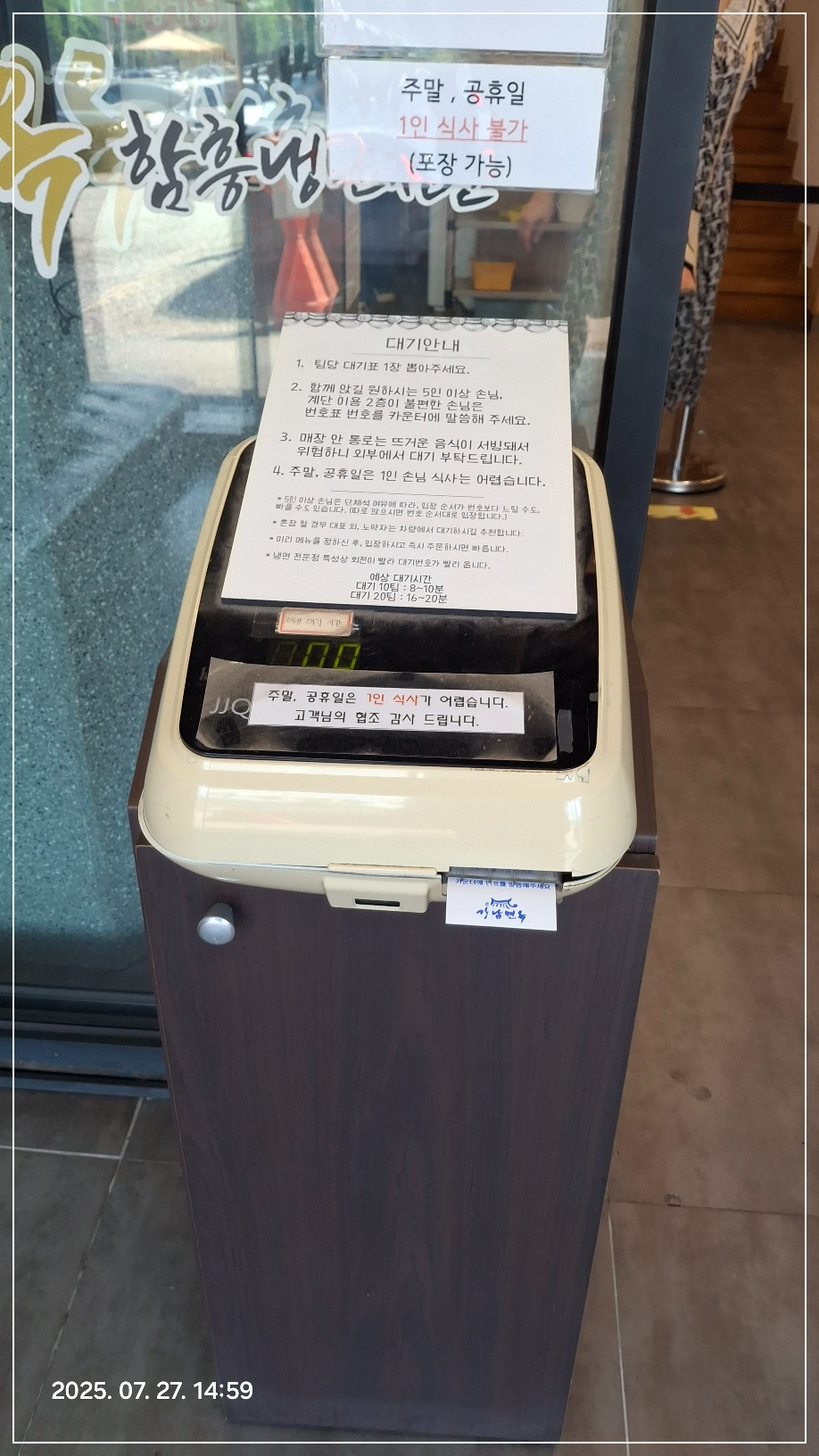 주말,공휴일등 바쁜 날에는 1인 손님은 거절한다네요.